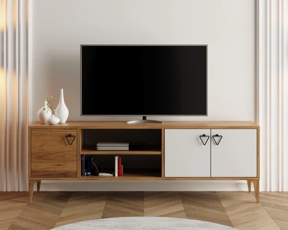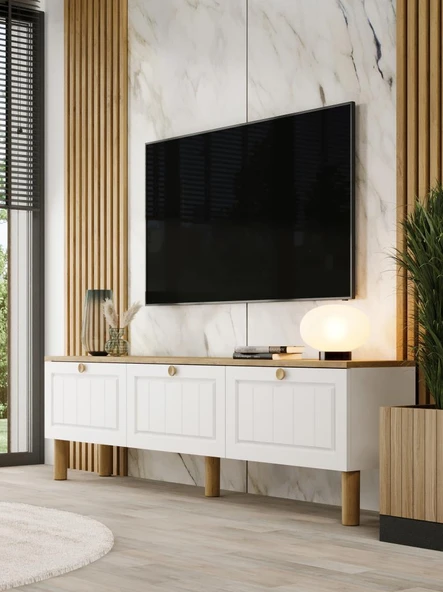 Rivo Tv Ünitesi Legnano-Beyaz Raflı ve Kapaklı Modern Tasarım 150 cm