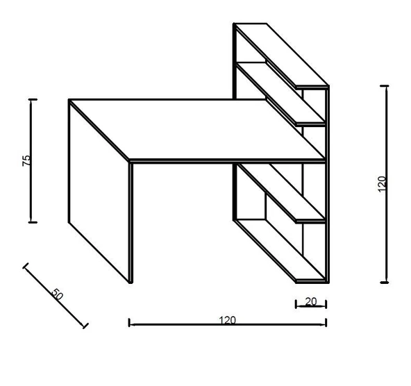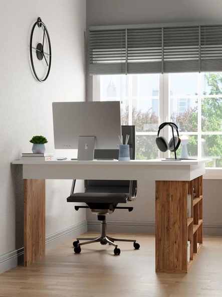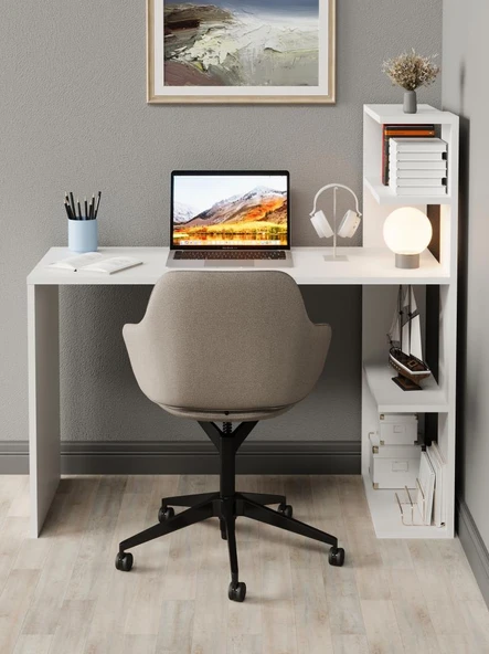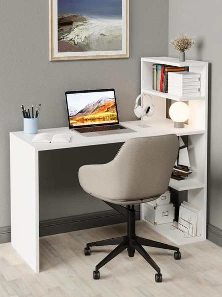 Luga Kitaplıklı Raflı Çalışma Masası Beyaz