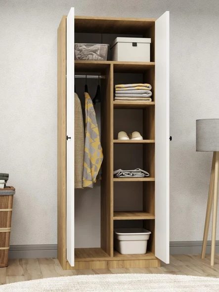 Kuzey Life Rami 2 Kapaklı 5 Raflı Askılı Gardırop 52cm Derinlik