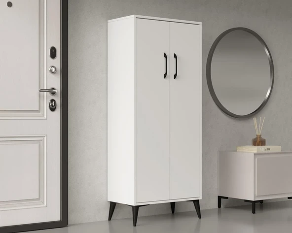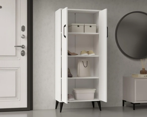 Flano Beyaz Çok Amaçlı Dolap İki Kapaklı Dört Raflı Mutfak,Banyo,Hol,Balkon,Ofis,Ayakkabılık