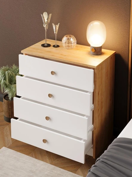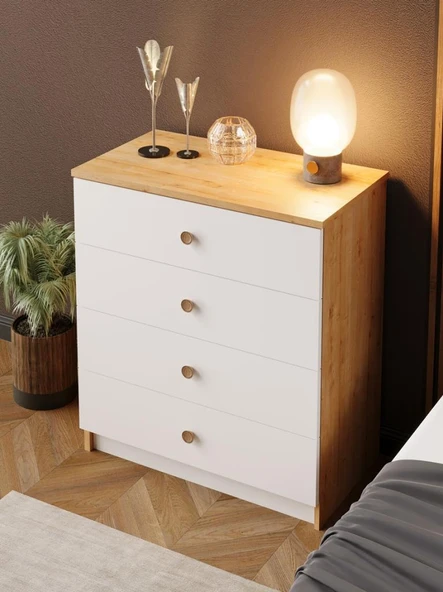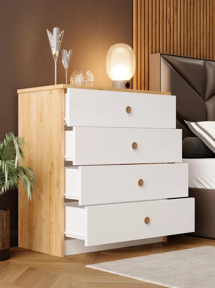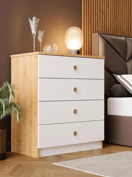 Kuzeylife Stella Şifonyer 4 Çekmeceli Bebek Genç Ytak Odası Safir Meşe