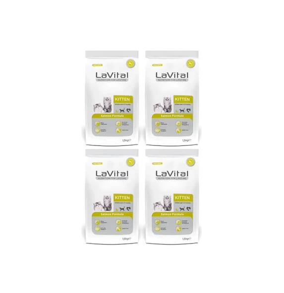 Lavital Somon Balıklı Yavru Kedi Maması 1,5 Kg*4 Adet