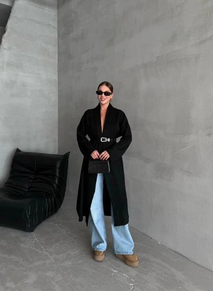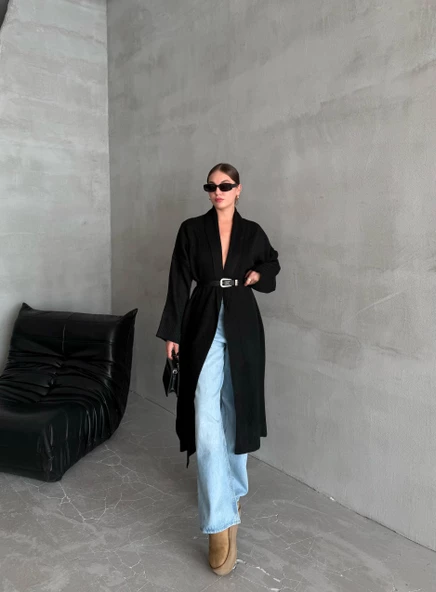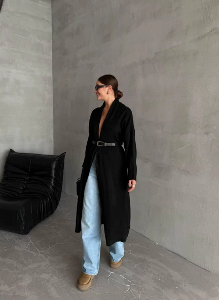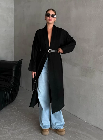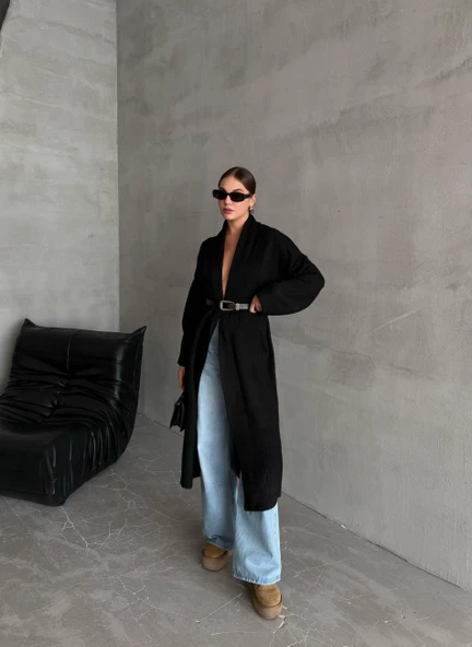 Siyah Çoban Dikiş Torba Cepli Hırka