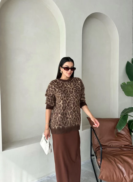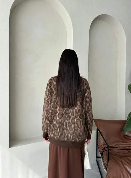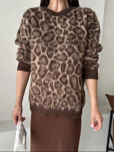 Taş-Kahve Leopar Desenli Yumoş Süveter
