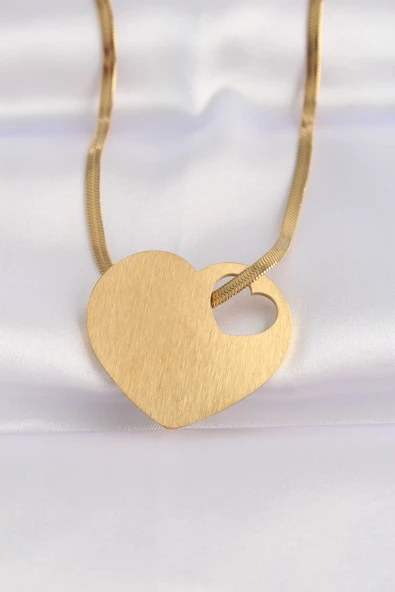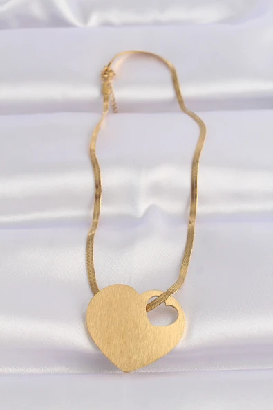 316L Çelik İtalyan Zincir Altın Renk Düz Plaka Kalp Kolye - TJ-BKO8637