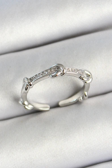 Pirinç Düğüm Figürlü Zirkon Taşlı Gümüş Renk Ayarlanabilir Kadın Yüzük - TJ-BYK3777