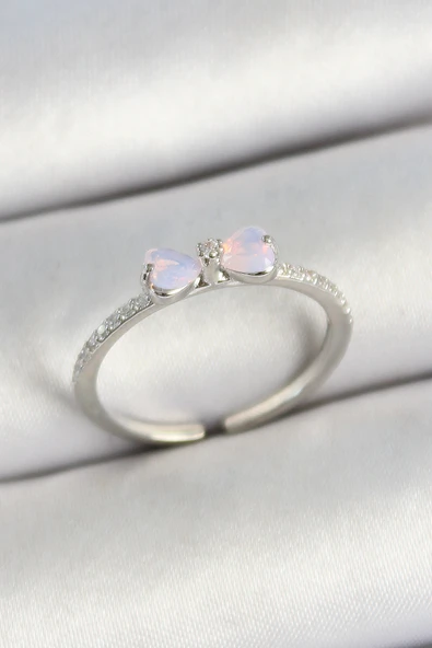 Pirinç Gümüş Renk Pembe Damla Zirkon Taşlı Ayarlanabilir Model Kadın Yüzük - TJ-BYK3734