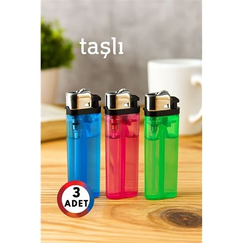 Modacar 3’lü Taşlı Çakmak Seti – Renkli Gövde | Gazlı, Ekonomik ve Güvenli Kullanım