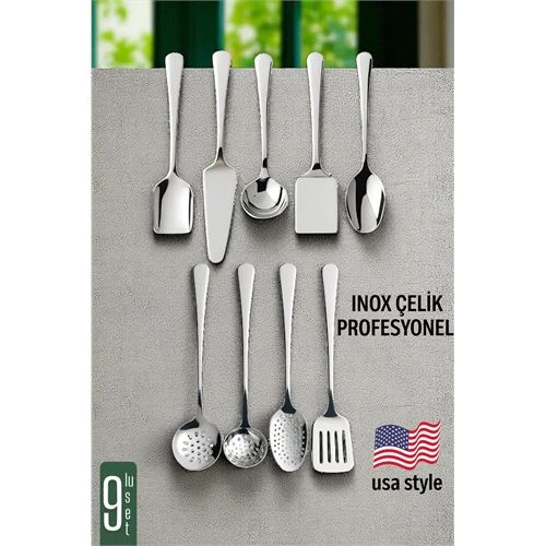 Modacar Amerikan Tip Servis Seti 9 Parça - Profesyonel Paslanmaz Çelik Çeyiz Seti
