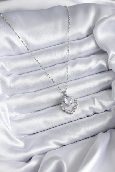 316L Çelik Gümüş Renk Zirkon Taşlı Kadın Kolye - TJ-BKO8137