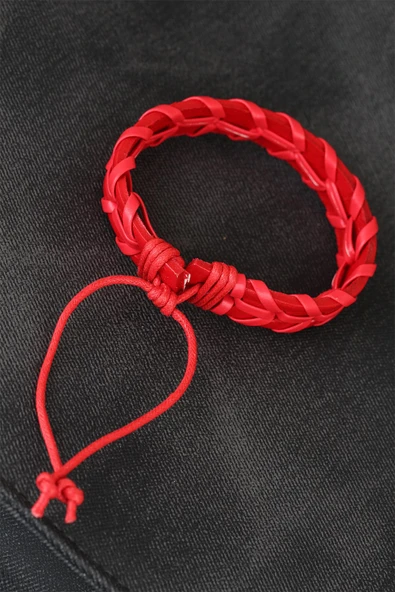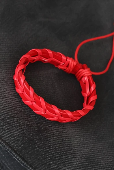 Kırmızı Örgü Deri Erkek Bileklik - TJ-EB1852