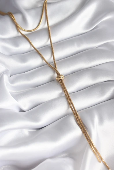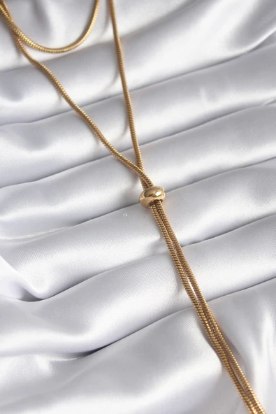 316L Çelik Gold Renk Tüp Zincir Asansör Model Kadın Kolye - TJ-BKO8286