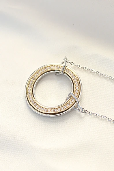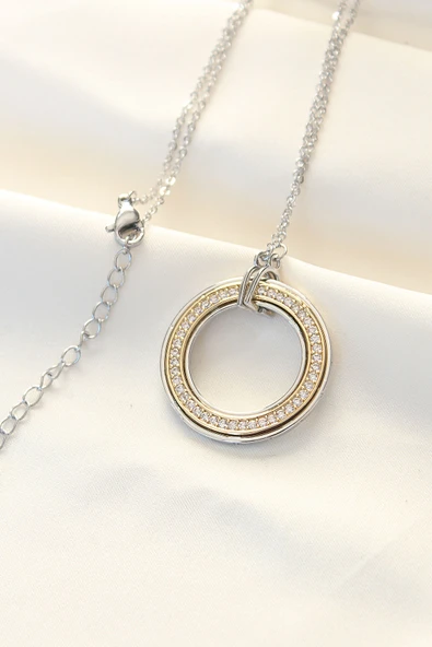 316L Çelik Zirkon Taşlı Çift Renkli Tifany Kolye - TJ-BKO8503