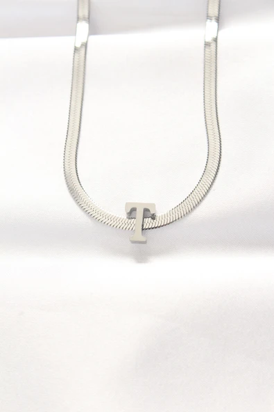 316L Çelik T Harfli Silver Renk İtalyan Zincirli Kolye - TJ-BKO8535