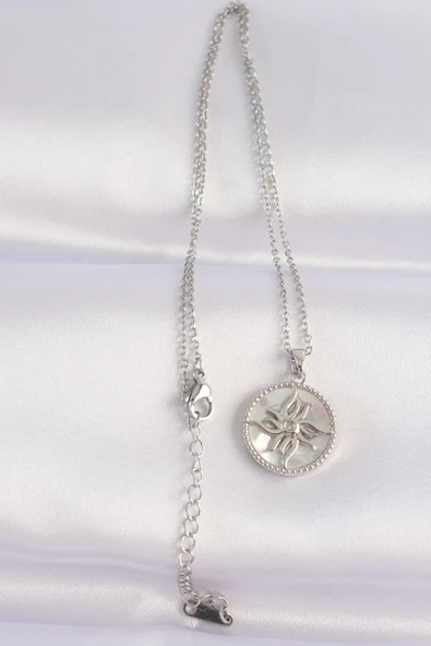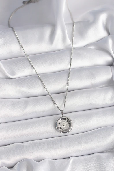 316L Çelik Zincir Gümüş Renk Oval Tasarımlı Güneş Kolye - TJ-BKO8663