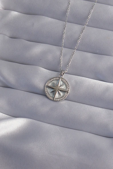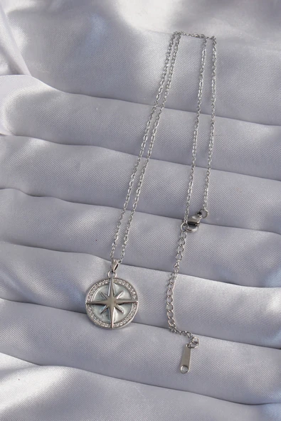 316L Çelik Zincir Gümüş Renk Zirkon Taşlı Kutup Yıldızı Kolye - TJ-BKO9012