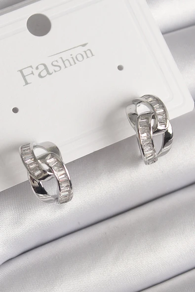 Pirinç Gümüş Renk Çift Sıra Zirkon Taşlı Kadın Küpe - TJ-BKP9755