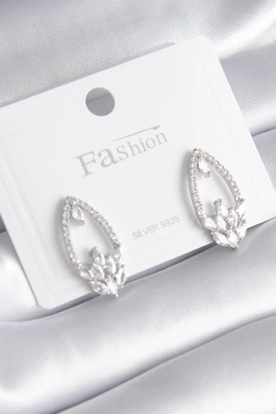 Pirinç Gümüş Renk Zirkon Taşlı Kadın Küpe - TJ-BKP8443