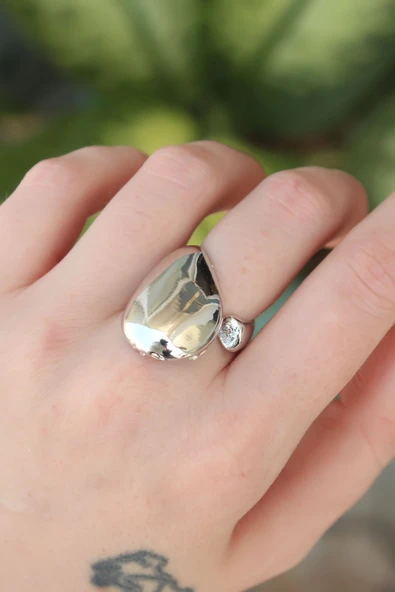Pirinç Gümüş Renk Ayarlanabilir İri Bombeli Yüzük - TJ-BYK3177