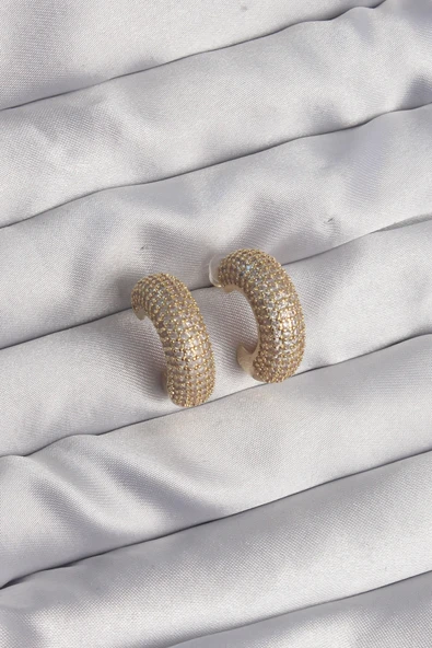 Pirinç Gold Renk Zirkon Taşlı Yarım Halka Küpe - TJ-BKP9113