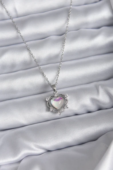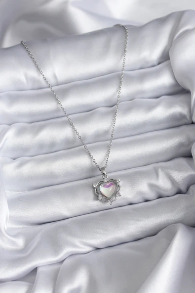 316L Çelik Zincir Gümüş Renk Kalp Model Kadın Kolye - TJ-BKO7823
