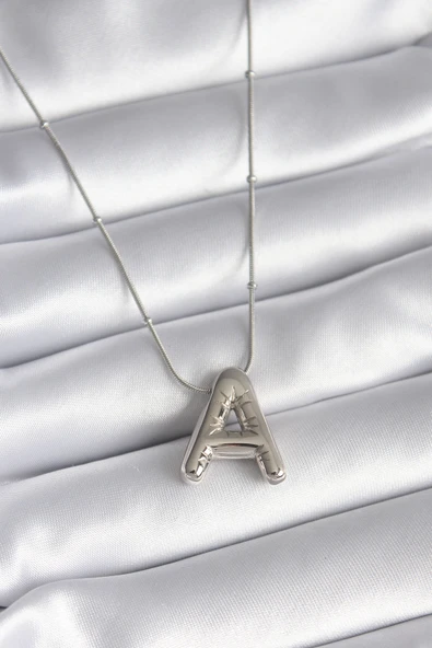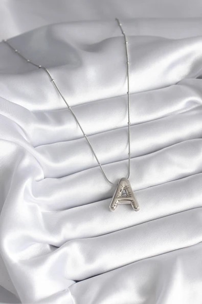 316L Çelik Gümüş Renk Bubble "A" Harf Model Kadın Kolye - TJ-BKO8308