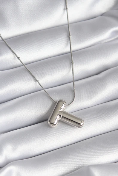 316L Çelik Gümüş Renk Bubble "T" Harf Model Kadın Kolye - TJ-BKO8295