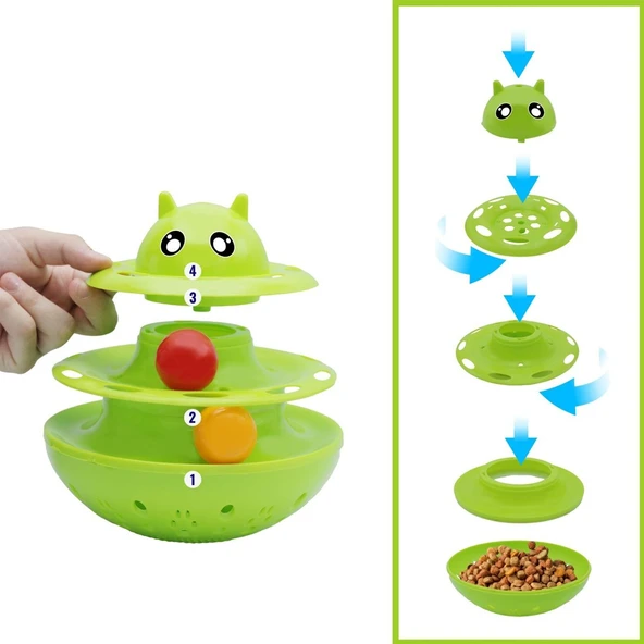 Kedi Başlıklı 3 Katlı Kedi Oyuncağı