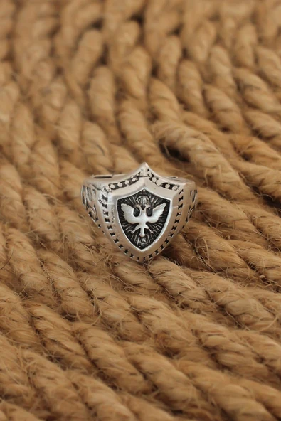 Antik Gümüş Kaplama Selçuklu Arması Ayarlanabilir Yüzük