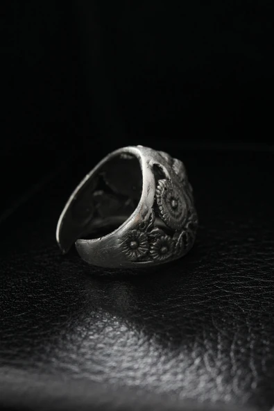 Kuru Kafa Tasarımlı Eskitme Gümüş Renkli Ayarlamalı Model Erkek Yüzük - TJ-EY216