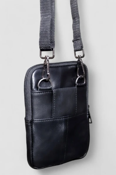 Lederax Erkek Hakiki Deri Telefon Bölmeli Bel Ve Göğüs Çantası
