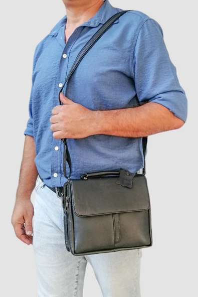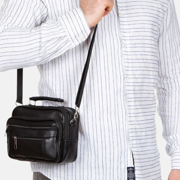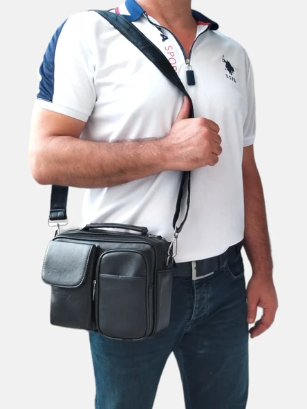 Lederax Hakiki Deri Çapraz Omuz Çantası Çift Taraf Askılı Bodybag