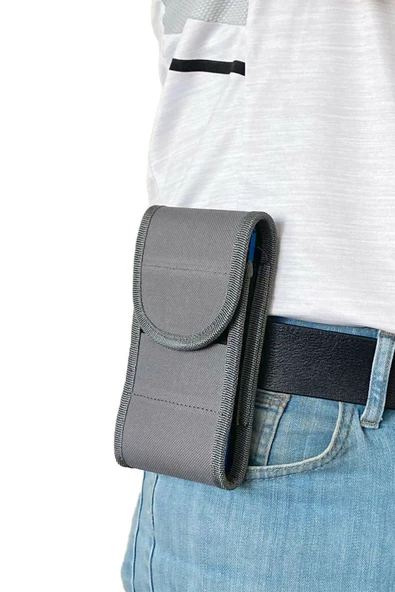 Lederax LD170 Kanvas Kumaş Cırt Kapaklı Kemere Takılan Telefon Kılıfı