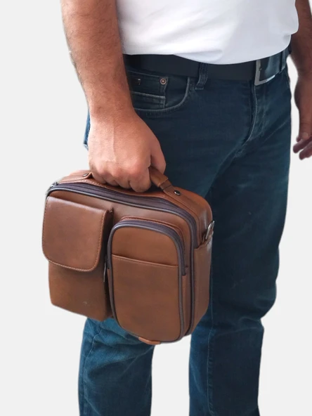 Lederax Suni Deri Çok Bölmeli Omuz Çantası LD510