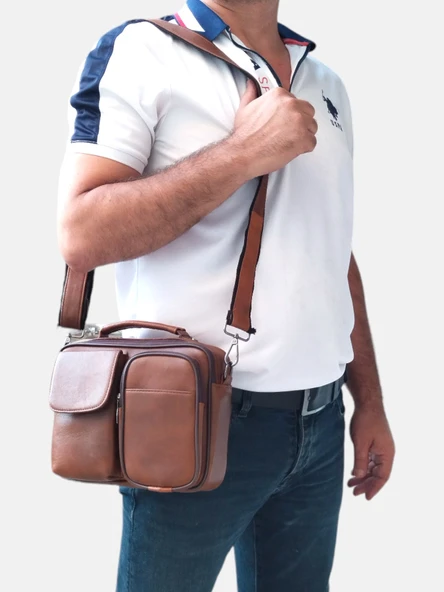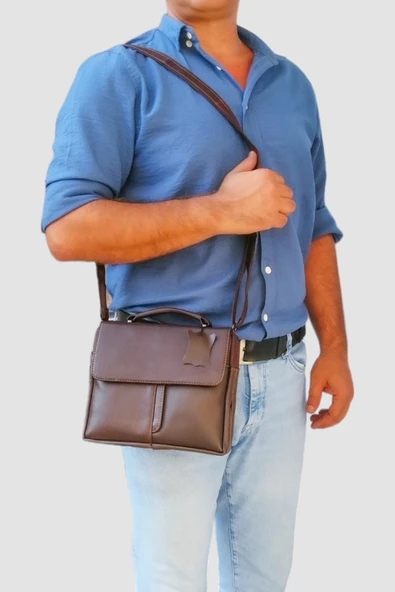 Lederax Suni Deri Çift Taraf Askılı Göğüs Çantası LD300