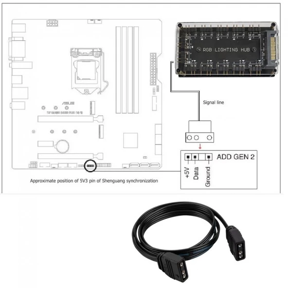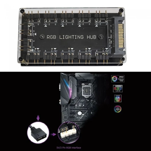5V 3-pin RGB 10 port Hub 3pin ARGB için adaptör uzatma kablosu