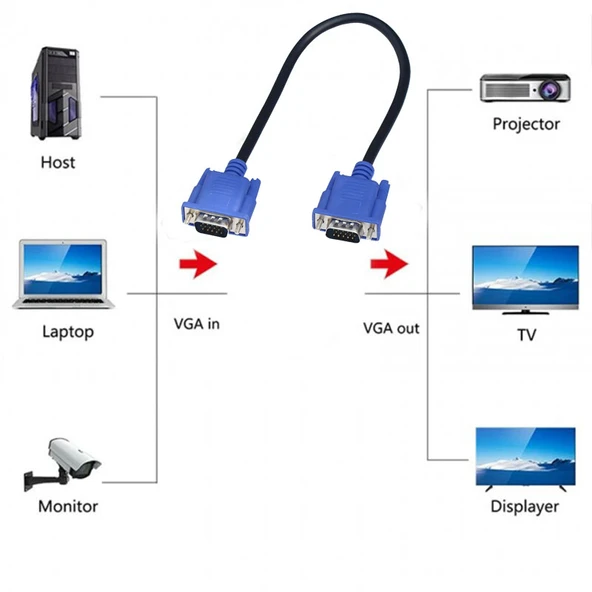 VGA kablo 15 pim vga erkek erkek görüntü kablosu 50cm