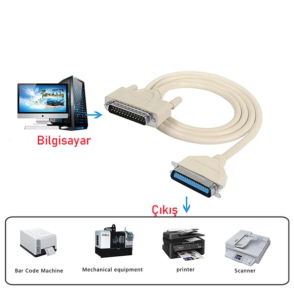 DB25 pin Lpt paralel port to CN36 Pin Dotmatrix yazıcı kablosu 3m