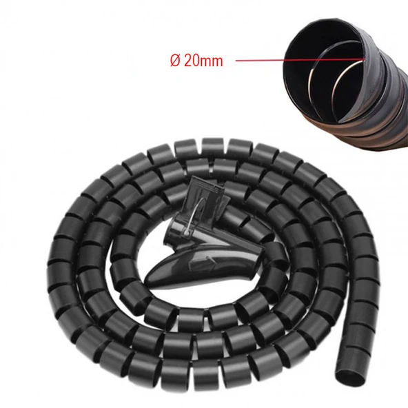 Kablo Askıları Kablo Kanalı Spiral kablo toplayıcı Çapı 20mm Siyah 1.5m