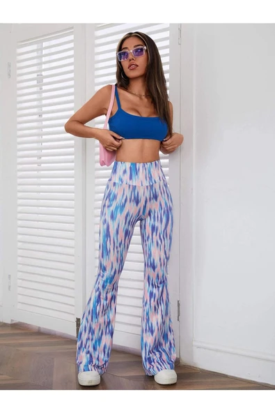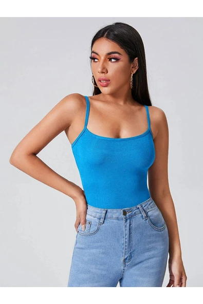 Kadın Mavi Renk Geniş Yaka Askılı Crop Atlet