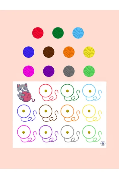 Çocuklara Renkleri ve Sıralamayı Öğreten Zeka ve Hafıza Geliştiren Eşleştirme Oyunu Etkinlik Kartı