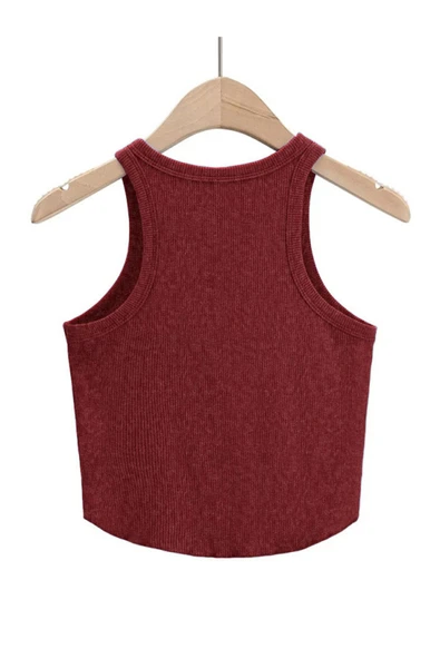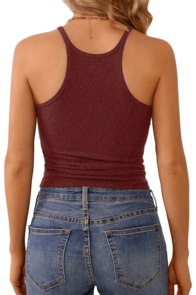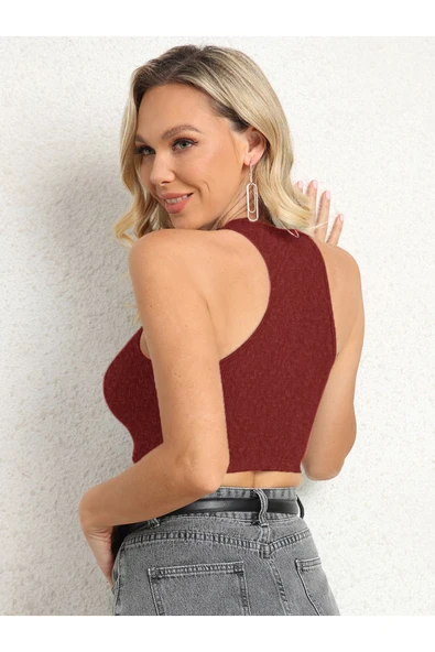 Kadın Ip Askılı Yüzücü Sırt Melanj Bordo Renk Crop Atlet Bluz