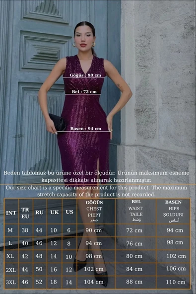 Kruvaze Yaka Payetli Midi Elbise 6031-Mürdüm