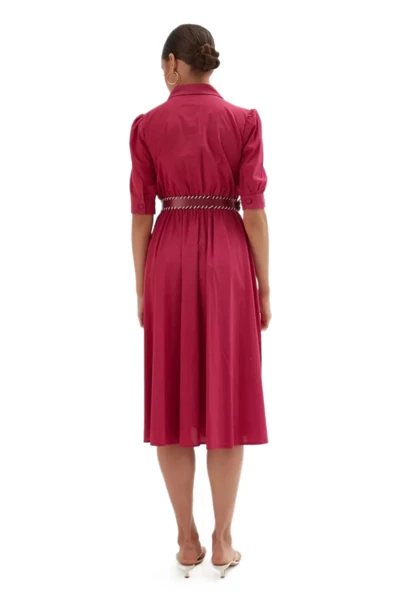 Nakış Ve Kemer Detaylı Poplin Elbise 1778-Fuşya