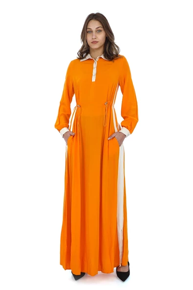Nakış Ve Kemer Detaylı Poplin Elbise 1778-Oranj