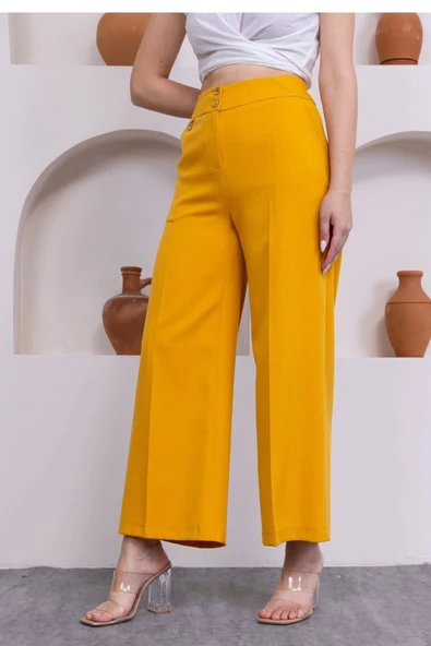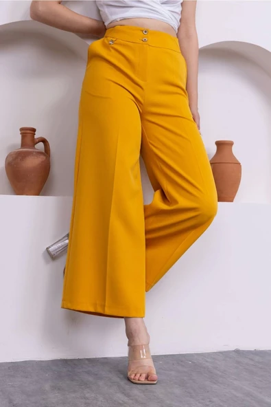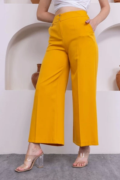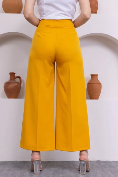 Cep Detaylı Palazzo Pantolon 301-Sarı