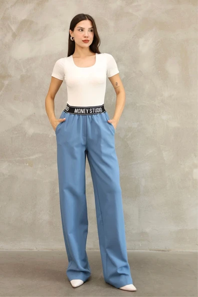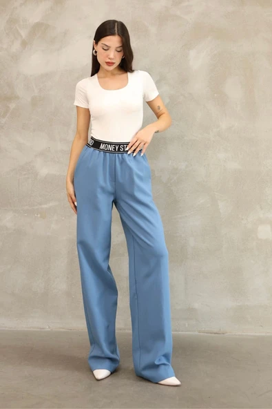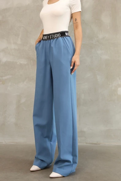 Beli Lastikli Palazzo Pantolon 6138-Mavi