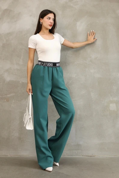 Beli Lastikli Palazzo Pantolon 6138-Petrol Yeşili