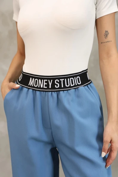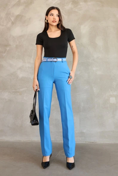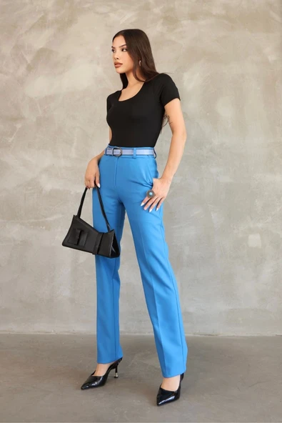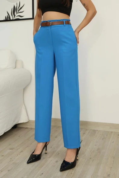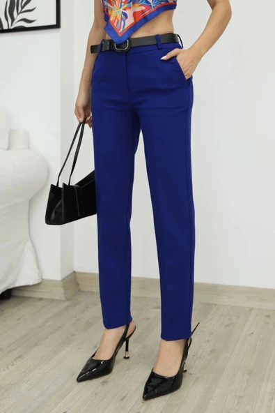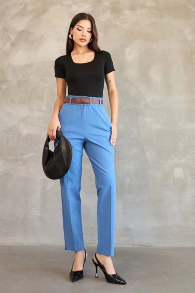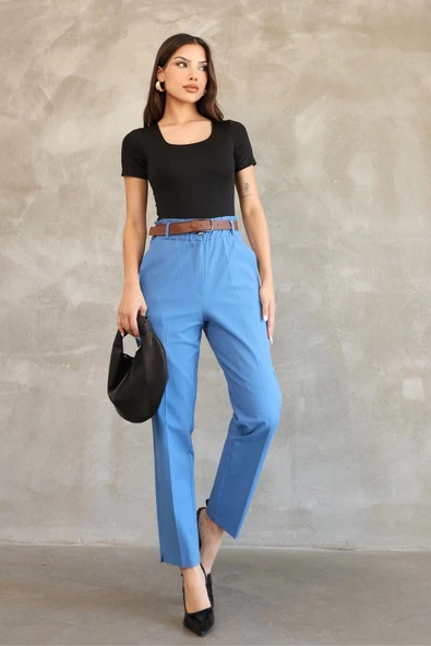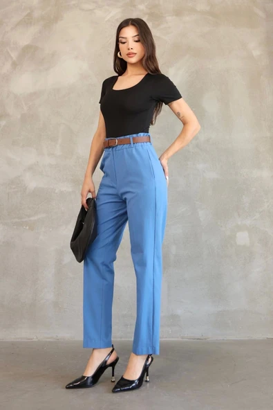 Kemer Detaylı Beli Lastikli Kumaş Pantolon 6155-İndigo