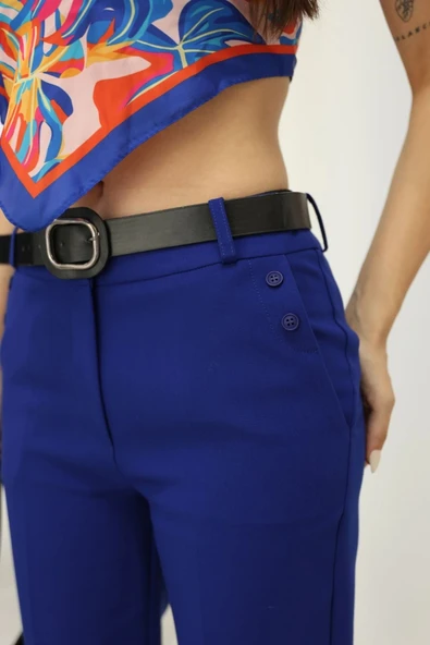 Cep Detaylı Beli Lastikli Kemerli Kumaş Pantolon 6157-İndigo